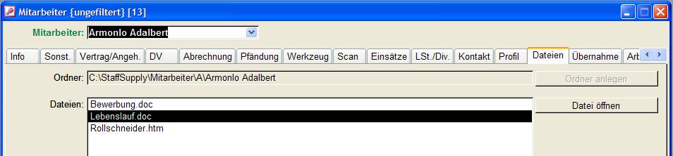 dem Hauptordner für Mitarbeiter (zB C:\StaffSupply\Mitarbeiter